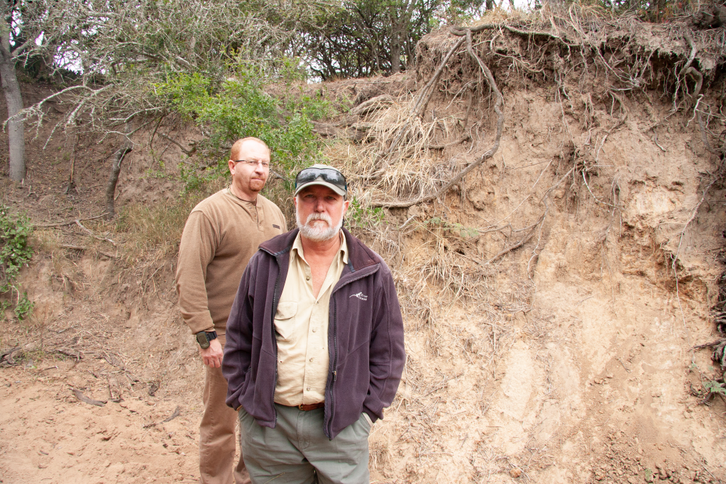 Mostafa Fayek (background) and Len van Schalkwyk (foreground) during clay sourcing field research in the emaKhosini (2014).